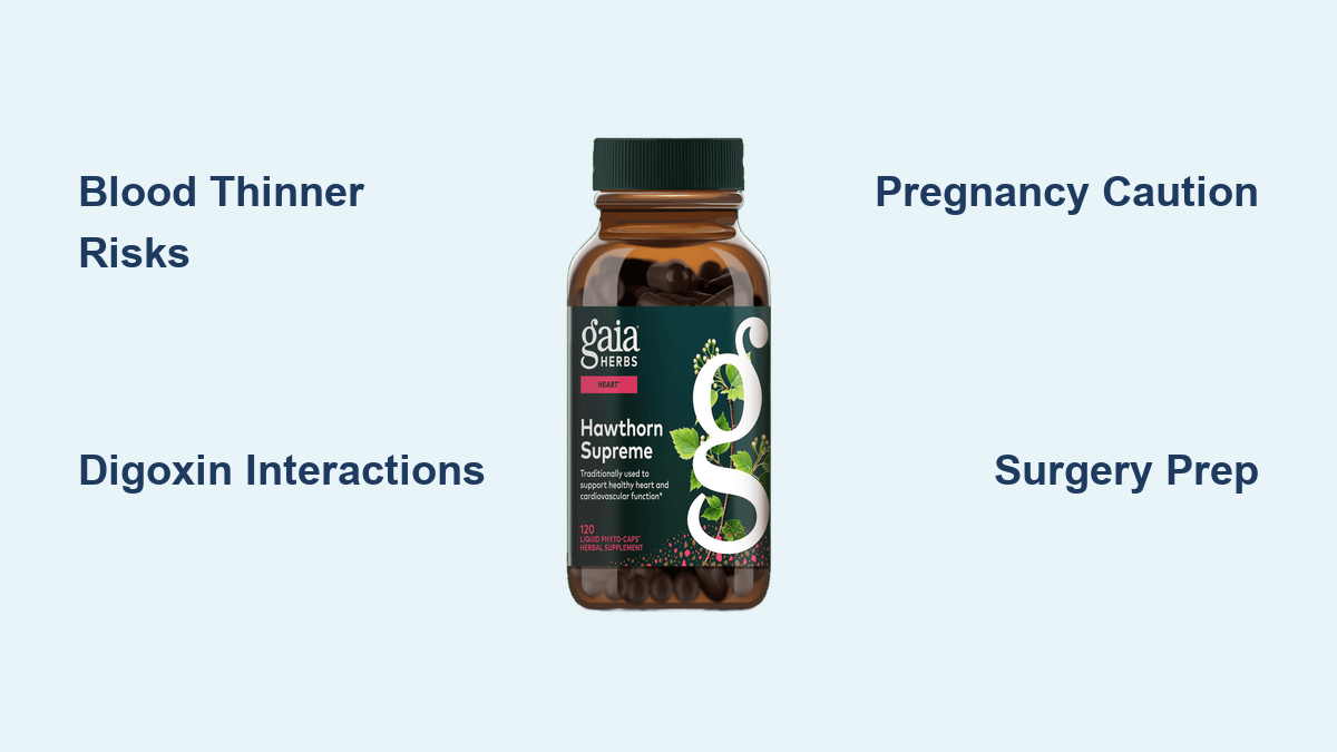 This combination requires strict medical supervision with alternative testing methods to monitor digoxin levels accurately. Never start hawthorn if you take digoxin without your cardiologist’s explicit approval and a revised monitoring plan that accounts for this complex interaction.